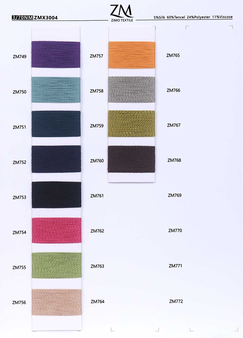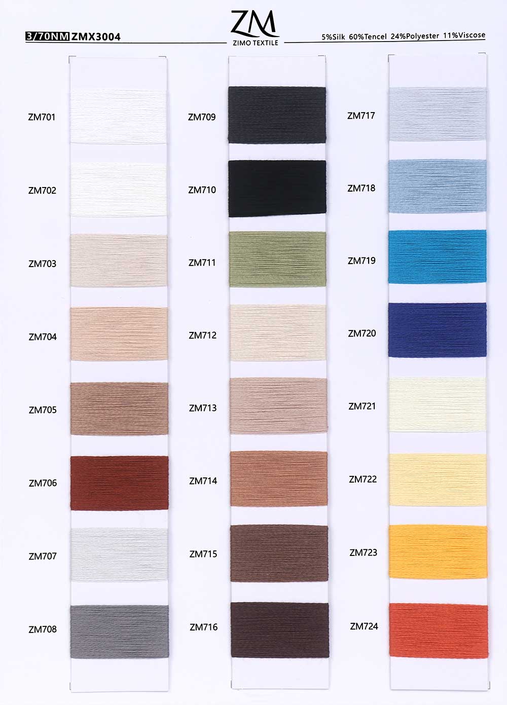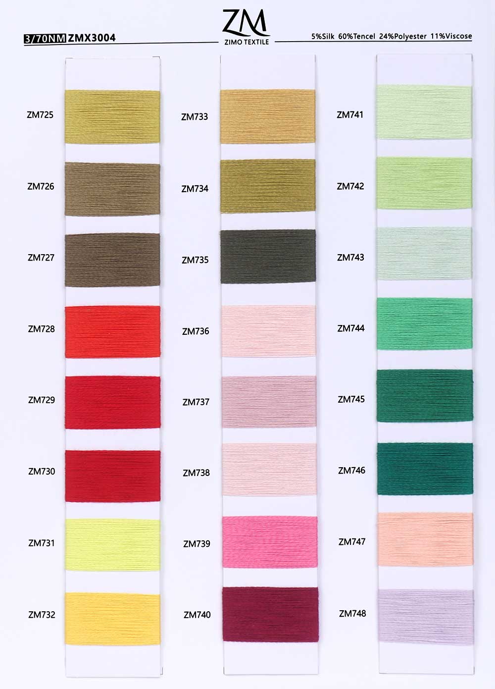 5%蚕丝Silk 60%天丝Tencel 24%涤纶Polyester 11%粘胶Viscose